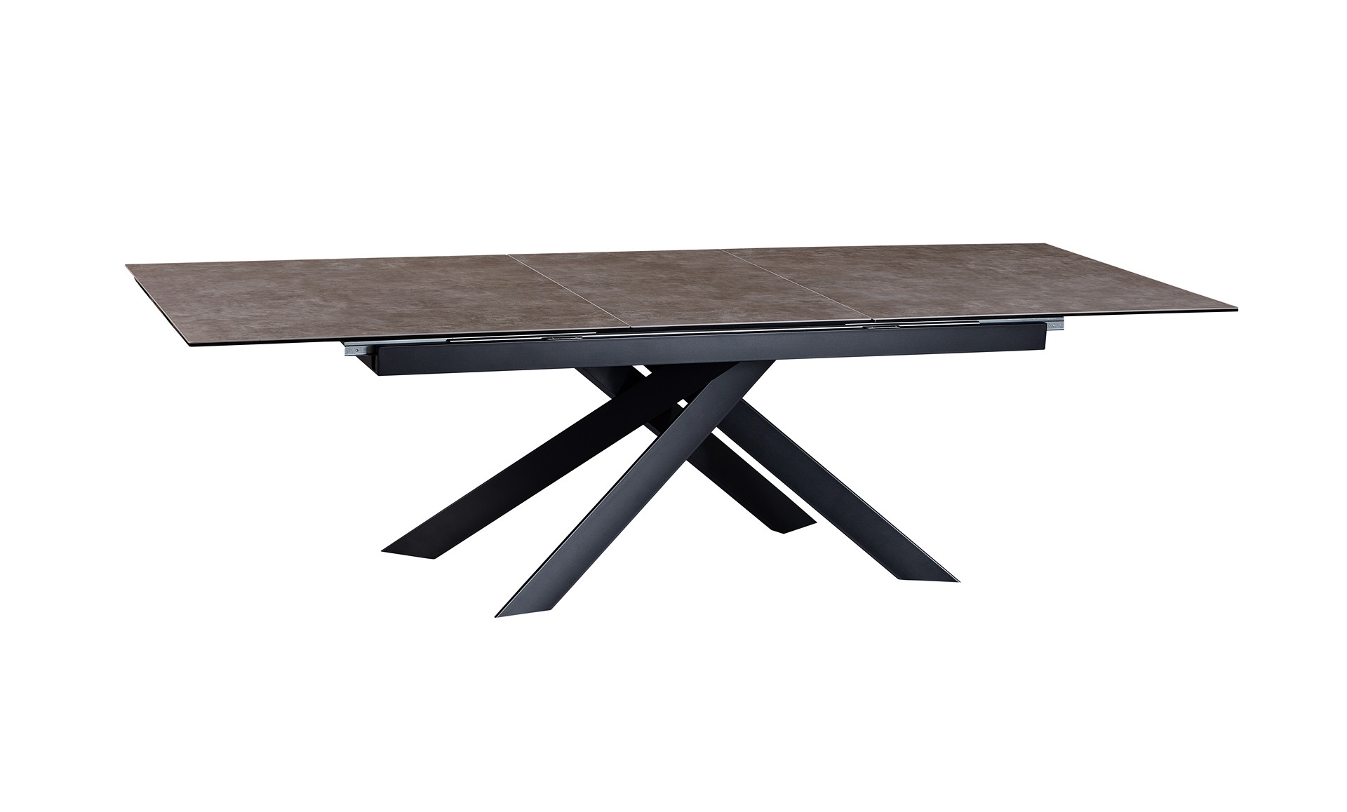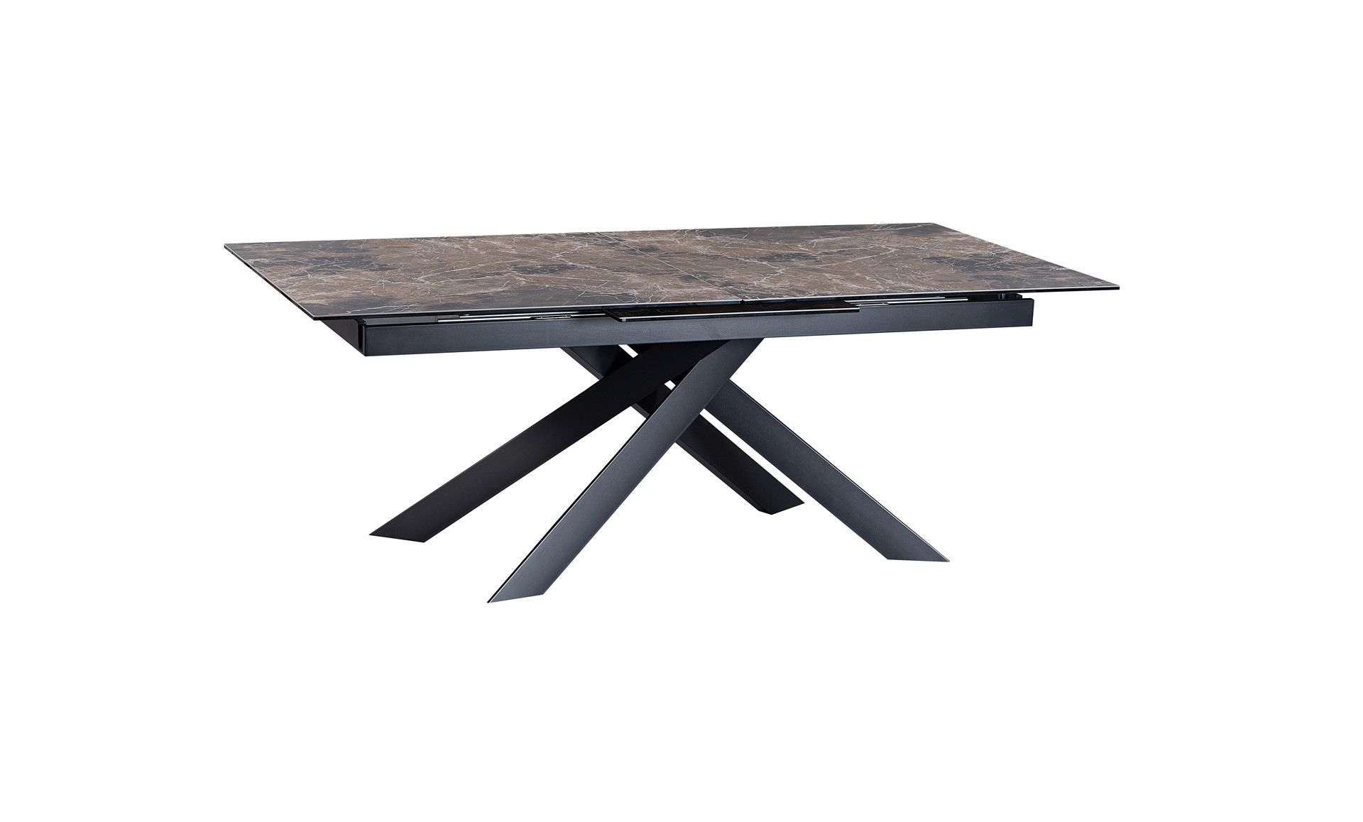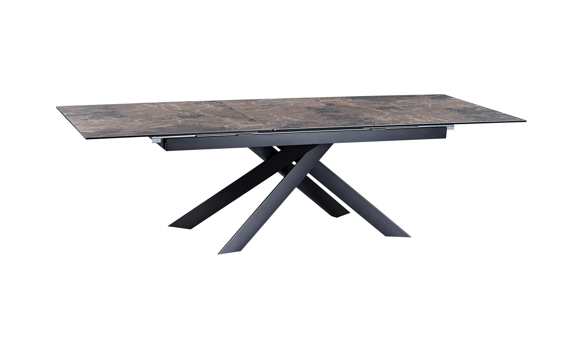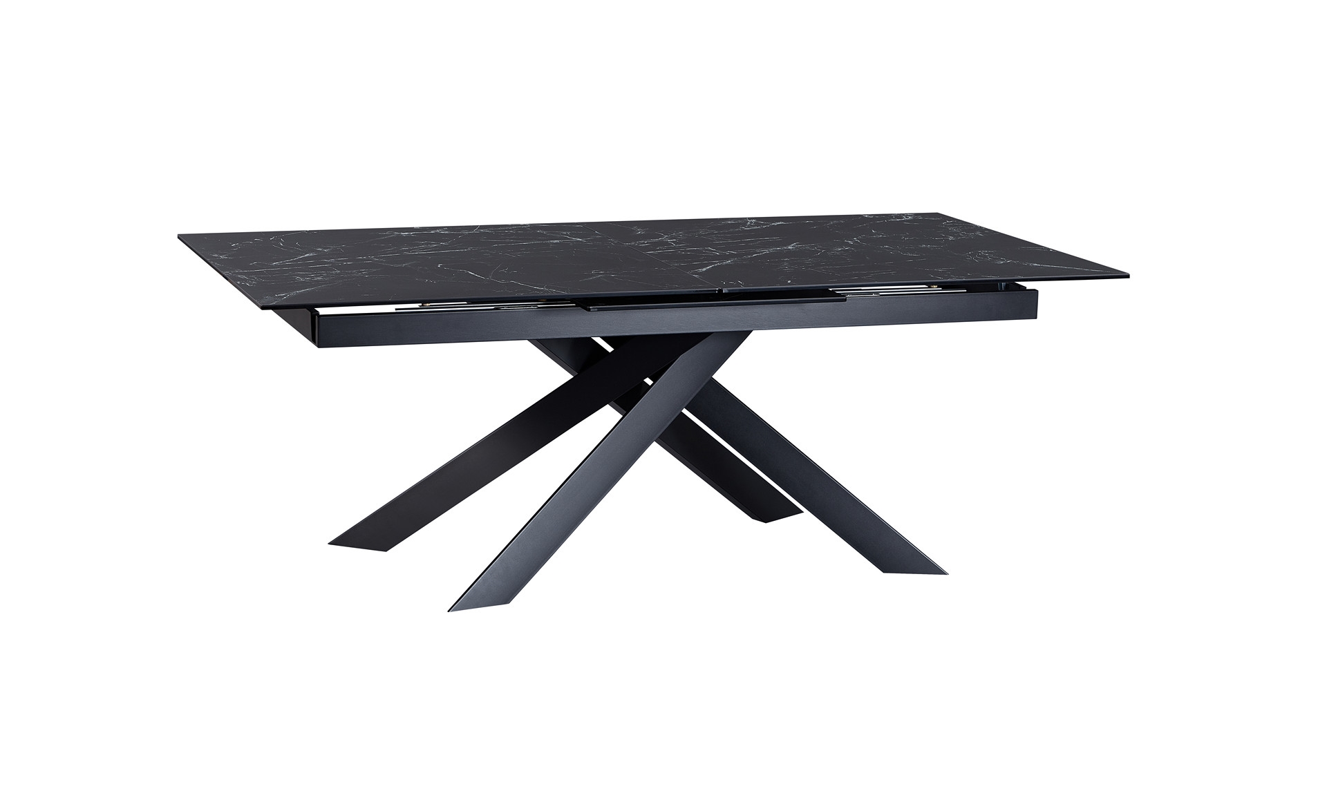 משטח פורצל תוצרת ספרד 3 מ"מ + 8 מ"מ ציפוי זכוכית (כ-11 מ"מ בסך הכול), רגלי מתכת בצבע שחור